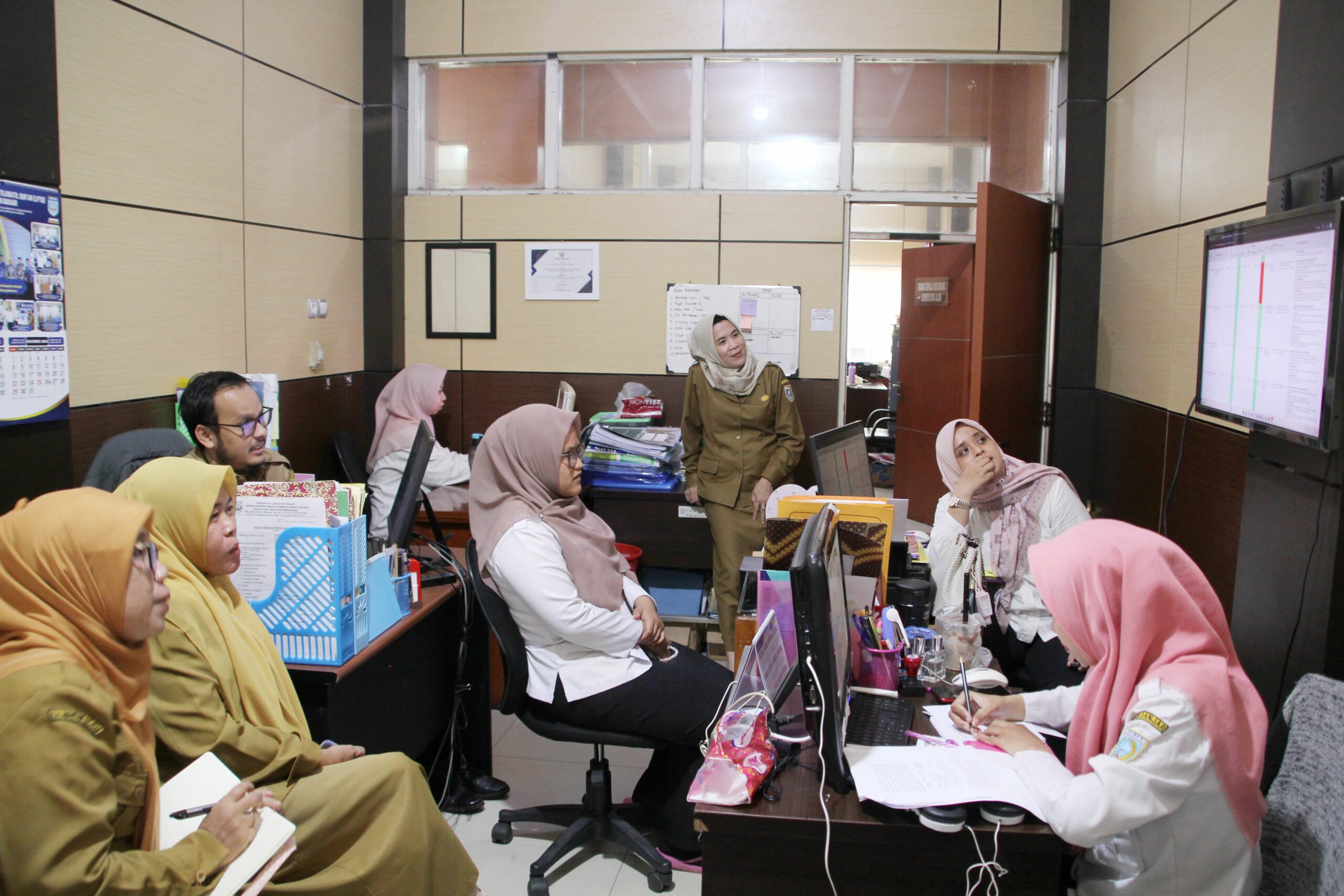 MARTAPURA – Sub Bagian Perencanaan bidang Sekretariat Bappedalitbang Kabupaten Banjar menggelar kegiatan monitoring dan evaluasi (Monev) terkait kinerja di bidang Sekretariat, Senin (4/11/2024). Kegiatan ini dihadiri oleh masing-masing perwakilan sub bagian, yaitu Sub Bagian Umum dan Kepegawaian serta Sub Bagian Keuangan dan Aset, yang secara bergantian melakukan rapat bersama Plt Kasubbag Perencanaan, M. Rizki Rifani, di ruang kerjanya.
