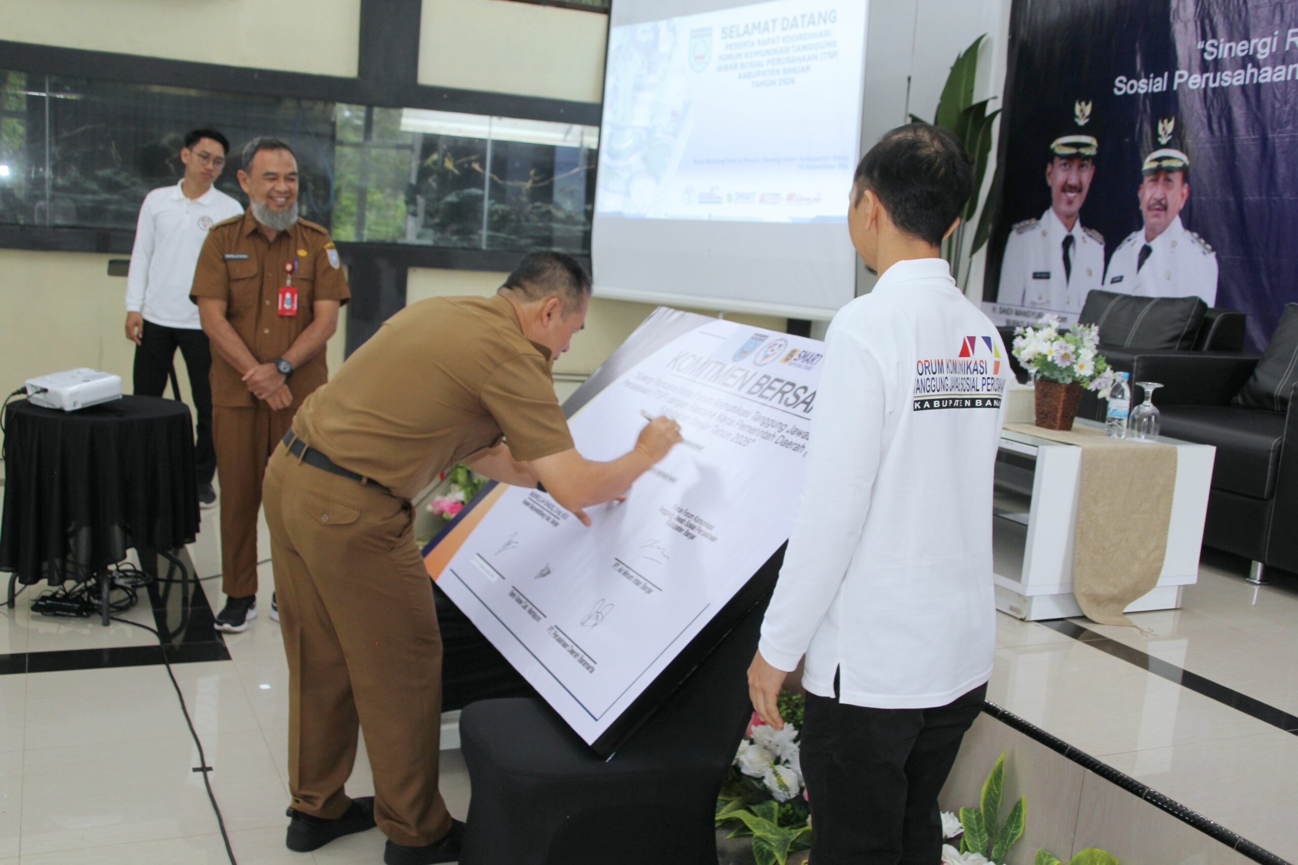 Dalam kesempatan tersebut, Pemkab Banjar melalui Bappedalitbang meluncurkan “CSR Award Tahun 2025” dengan menekan layar touch screen, dilanjutkan dengan penandatanganan komitmen bersama oleh perwakilan perusahaan, di antaranya PTAM Intan Banjar, PT PLN UID Kalselteng, Bank Kalsel Cabang Martapura, dan PT Perusda Baramarta disaksikan langsung oleh Asisten Administrasi Umum, Rakhmat Dhany .