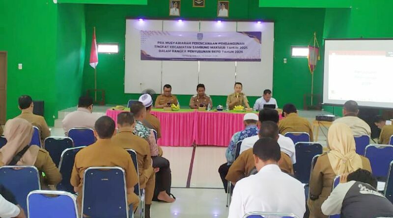 SAMBUNG MAKMUR – Bappedalitbang Kabupaten Banjar melalui Bidang Pemerintahan dan Pembangunan Manusia, khususnya Sub Bidang Pemerintahan, turut hadir dalam kegiatan Pra Musyawarah Perencanaan Pembangunan (Musrenbang) Kecamatan di Kecamatan Sambung Makmur. Acara ini berlangsung pada Senin (13/1/2025) pagi di Aula Kecamatan Sambung Makmur dan dibuka secara simbolis oleh Camat Sambung Makmur, Yuana Karta Abidin.