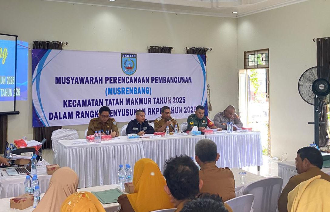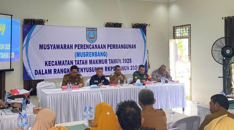 Camat Tatah Makmur, Wahyudi Rahmat, turut mengapresiasi jalannya Musrenbang dan menegaskan bahwa aspirasi masyarakat telah dihimpun dengan baik. Ia berharap agar usulan prioritas yang diajukan dapat diakomodasi dalam RKPD Kabupaten Banjar tahun 2026.