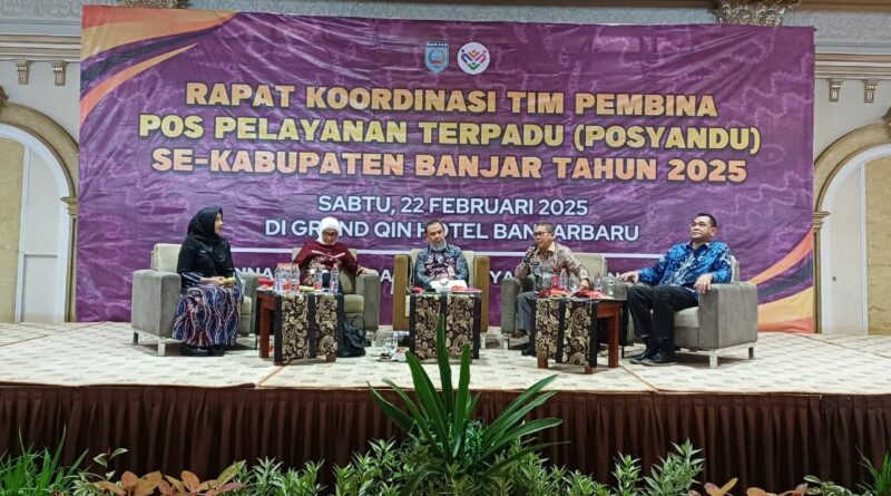 MARTAPURA – Kepala Bappedalitbang Kabupaten Banjar, Nashrullah Shadiq, menjadi salah satu narasumber dalam Rapat Koordinasi Tim Pembina Posyandu se-Kabupaten Banjar tahun 2025. Acara ini dibuka secara resmi oleh Habib Idrus Al Habsyi pada Sabtu (22/2/2025) di Grand Qin Hotel Banjarbaru.