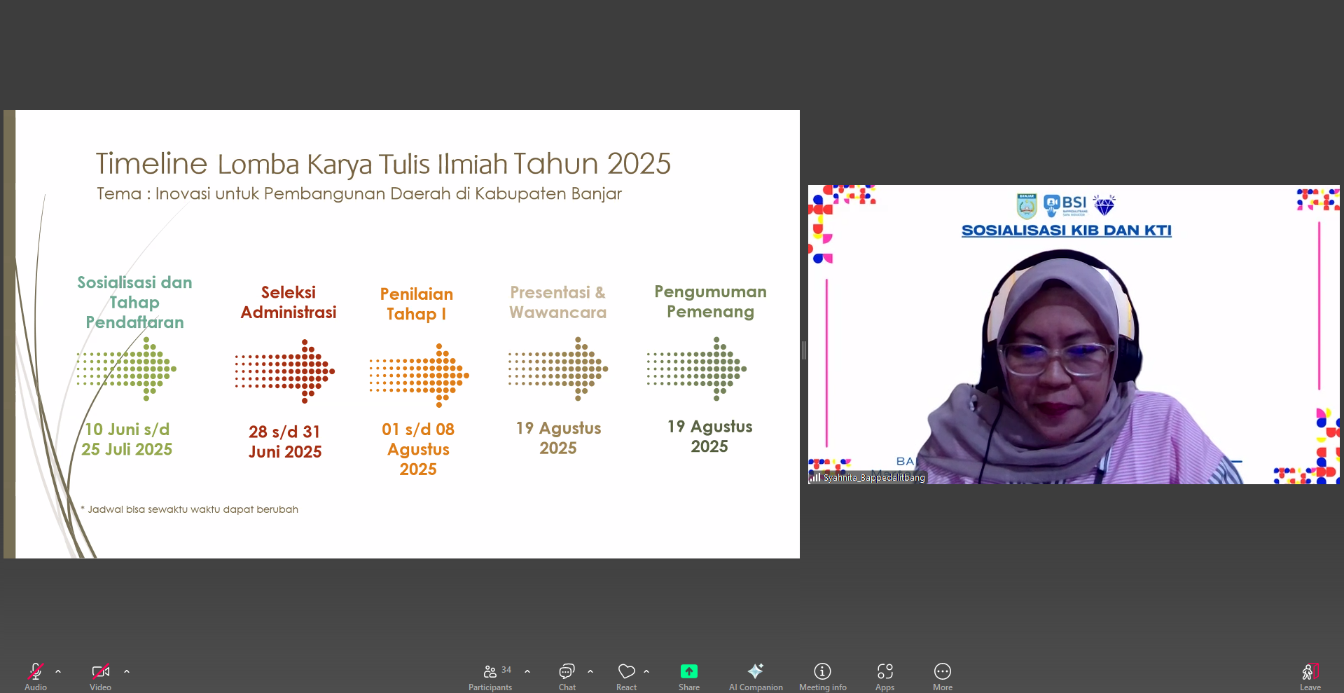 Webinar yang dimoderatori oleh Aulia Ananda Putri, staf Bidang Penelitian, Pengembangan, dan Inovasi (PPI), menghadirkan narasumber utama Kasubbid Inovasi Daerah, Norsyahnita, yang akrab disapa Nita. Dalam paparannya, Nita menjelaskan secara mendalam mengenai mekanisme, kategori, serta persyaratan Kompetisi Intan Banjar yang kembali digelar tahun ini.