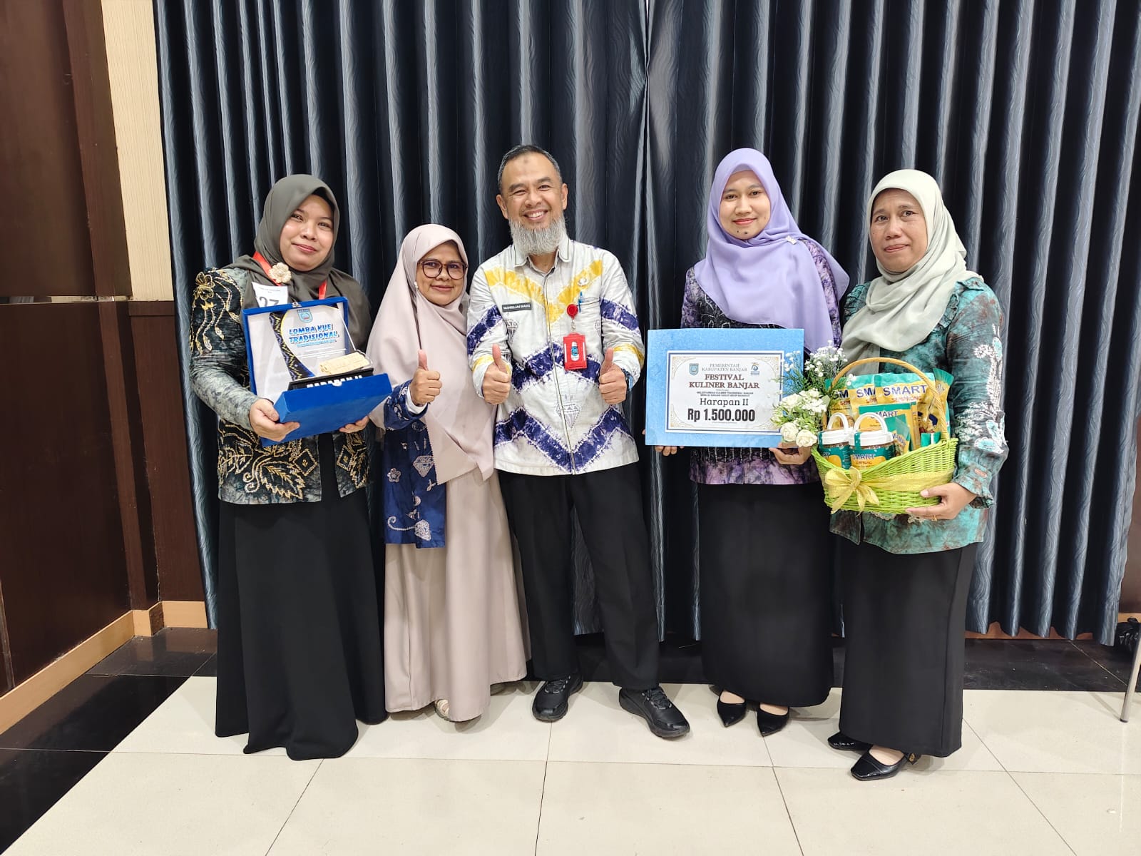 MARTAPURA – Bappedalitbang Kabupaten Banjar berhasil meraih juara Harapan II dalam Lomba Kue Tradisional yang tahun ini mengusung tema inovasi kue semprong. Hadiah penghargaan diterima langsung oleh Ketua Dharma Wanita Bappedalitbang, Dewi Sari Nashrullah Shadiq, dan diserahkan secara simbolis oleh Ketua TP PKK Kabupaten Banjar, Nur Gita Tiyas, pada Kamis (25/9/2025) siang bertempat di Aula Dinas Pendidikan Kabupaten Banjar.